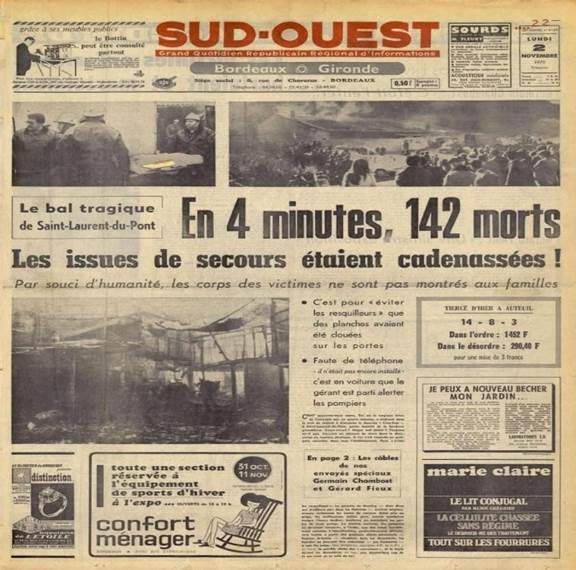Dans la nuit du 31 octobre au 1er novembre 1970, un incendie s’est déclaré dans la discothèque Le 5-7, située à Saint-Laurent-du-Pont, en Isère. Le sinistre a causé la mort de 146 personnes, en majorité des jeunes.