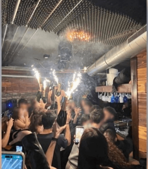 Le barman, Christian Rota, voit des lumières rouges à l’étage et comprend qu’il s’agit d’un incendie : il rejoint sa fiancée, Odile, et appelle le plus possible de fêtards à le suivre. Le couple traverse toute la piste de danse en criant au feu, mais il n’est pas sûr que les gens aient entendu en raison du volume de la musique. Le feu se propage cependant très rapidement et effraie le public, d’après son témoignage du lendemain auprès des journalistes. Les personnes effrayées reculent vers la piste de danse et se retrouvent coincées dans la foule qui se précipite vers les tourniquets. Une vingtaine de personnes présentes l’entendent et parviennent à sortir de la pièce avant qu’il ne soit trop tard. Selon le témoignage de Pierre Montillot, un survivant, l’orchestre continue de jouer alors que le feu ravage déjà une partie de l’établissement : « il jouait Satisfaction des Stones, j’ai ce souvenir précis » dit-il. Pendant que l’orchestre joue Satisfaction, les amplificateurs se mettent à émettre un sifflement continu et des grandes flammes sortent du plafond au-dessus du bar. Un musicien cri « pas de panique » et le groupe continue à jouer.